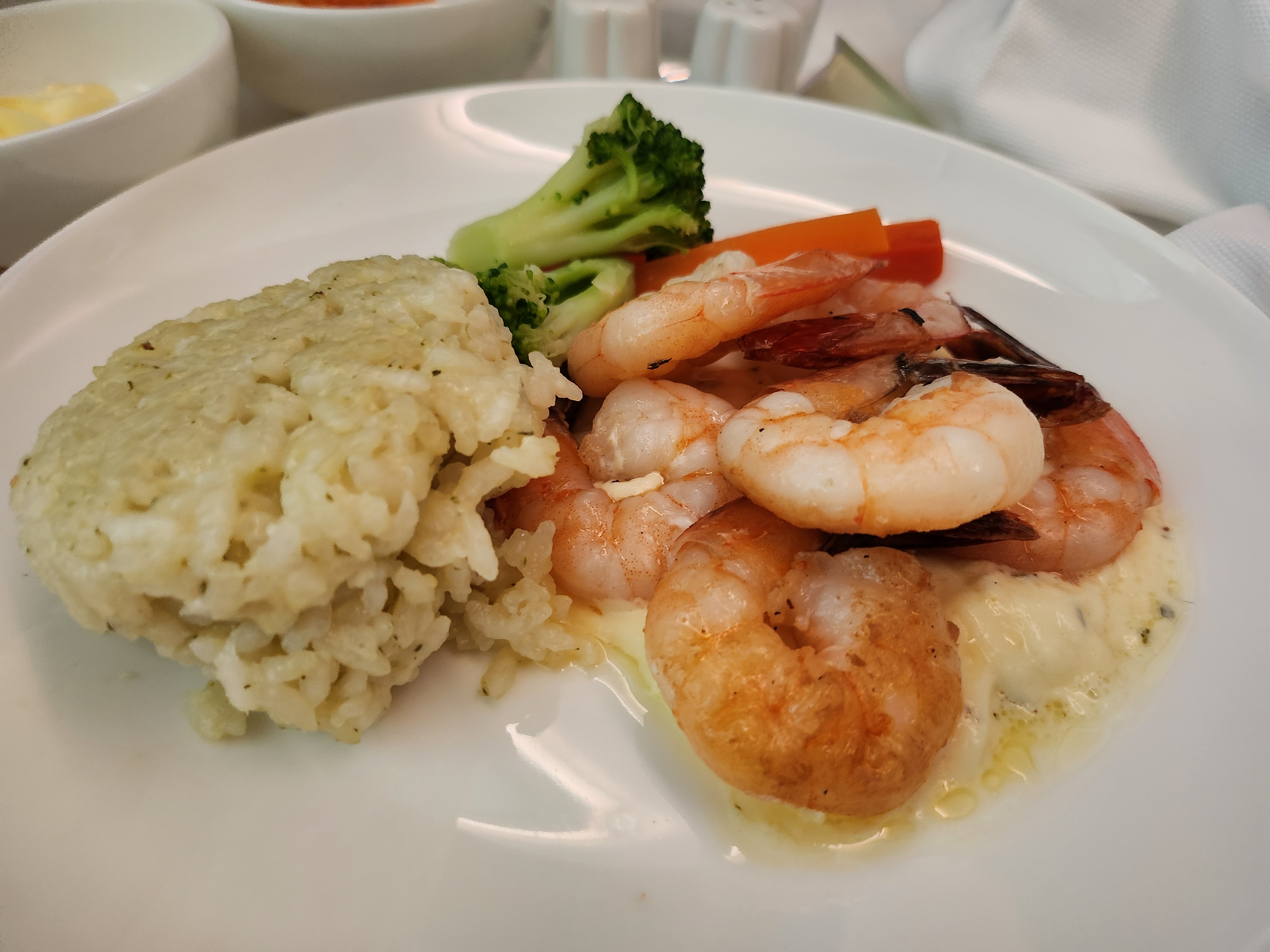 메인 요리는 이제 새우와 밥을 얹은 요리와 황태국 비슷한 이런 요리였어요.